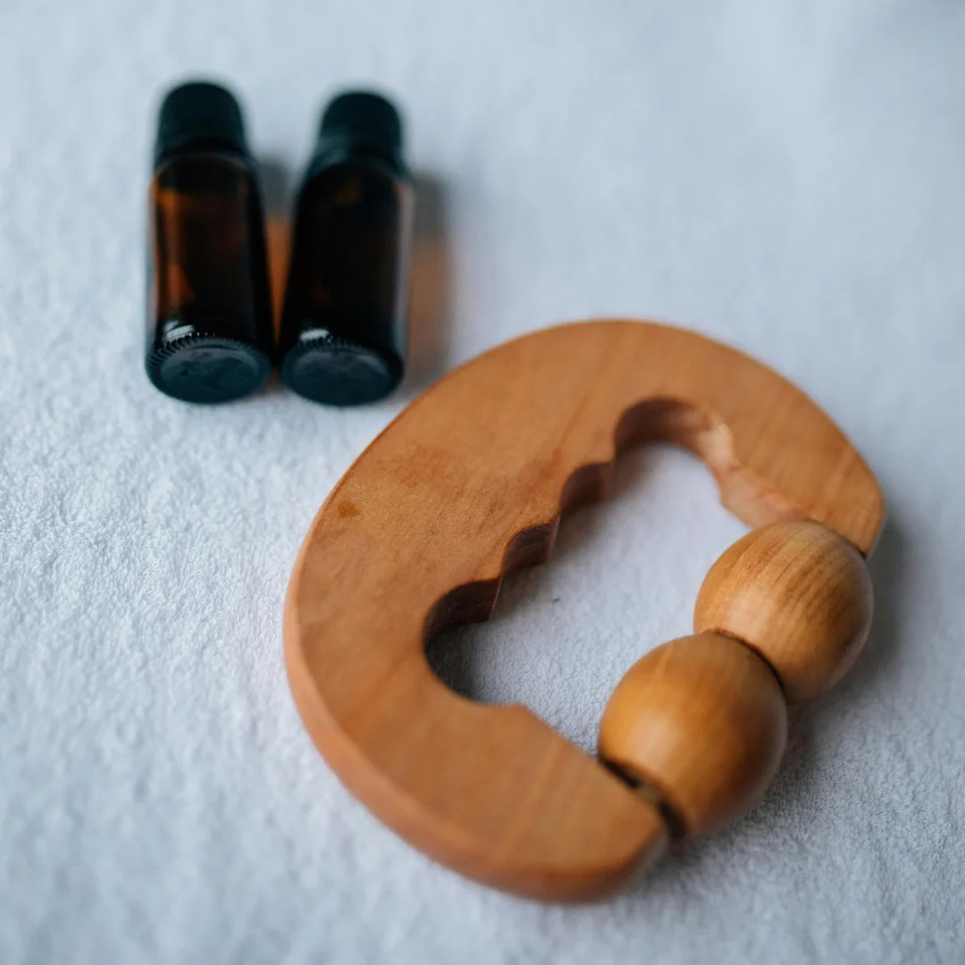 Maderotherapy is a targeted treatment using natural wooden tools to stimulate circulation, support detoxification, reduce bloating, and improve skin texture. The technique also supports fascia release and digestive function.